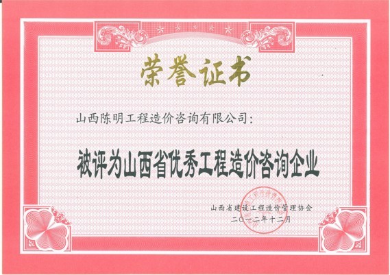 優(yōu)秀工程造價(jià)咨詢(xún)企業(yè)