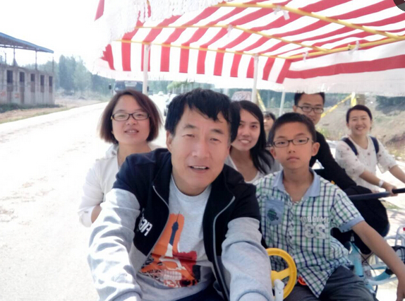 首先大家一同乘車(chē)到達(dá)丹河濕地公園,在公園的標(biāo)志前合影留念后,自由組合乘坐多人腳踏車(chē):有兩人、三人、四人位置的。大家沿著丹河河岸平坦的道路一路騎行,一路放歌,歡聲笑語(yǔ)不斷。第一站先到達(dá)丹河吊橋,吊橋雖然牢固安全,但搖搖晃晃,勾起了許多小孩的好奇心,大家在橋上走走停停甚是新鮮。通過(guò)吊橋走到河的對(duì)面,是一片薰衣草花海,遠(yuǎn)遠(yuǎn)望過(guò)去像一片紫色的祥云,讓大家賞心悅目,大家迫不及待拿出相機(jī)駐足拍照,一個(gè)個(gè)置身美麗的花海仿佛瞬間變成了花仙子,美麗動(dòng)人!賞完了花景后大家繼續(xù)騎車(chē)到達(dá)同事家中品嘗自制的“花涼粉”,“花涼粉”清涼可口,讓大家忘記了外面炙熱的太陽(yáng)。