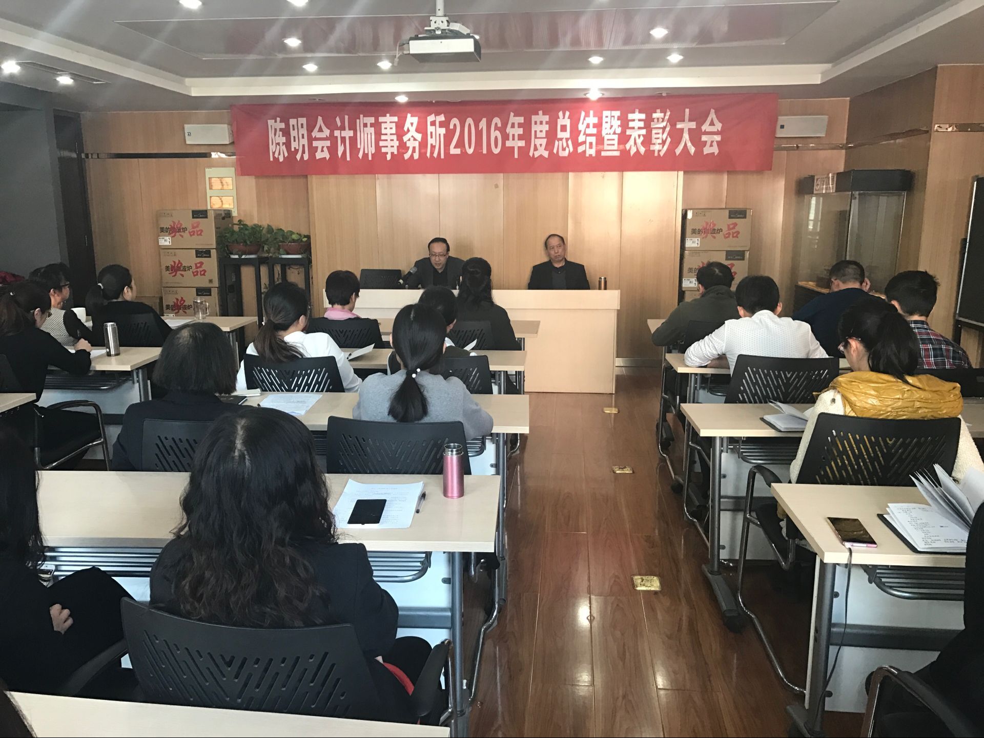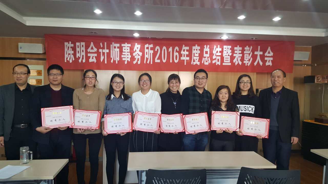 2月11日上午,陳明會計師事務(wù)所全體員工在會議室隆重召開公司2016年度工作總結(jié)暨表彰大會,大會由史志忠經(jīng)理主持。