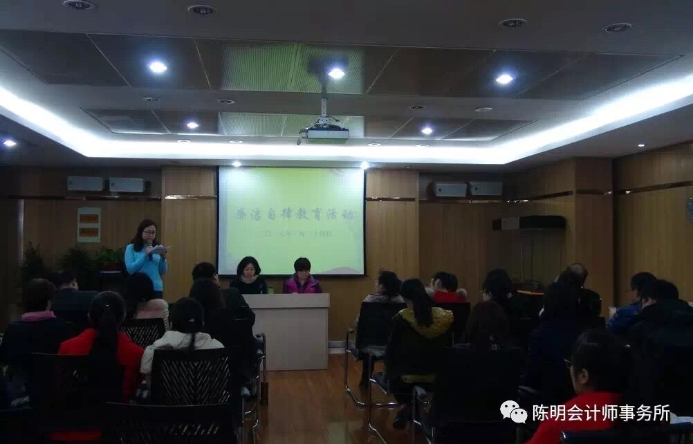 首先董事長陳雪琴做重要發(fā)言,她指出:我們作為中介機(jī)構(gòu)要站在第三方的立場(chǎng)客觀公正的出具報(bào)告,讓委托單位放心,“打鐵還需自身硬”是中國一句千古傳誦的名言。鐵之所以硬,是因?yàn)樗?jīng)過了熔爐的冶煉和錘煉。鐵錘之所以能打鐵,是因?yàn)殍F錘本身也有鐵的硬度。由此可見:“治人者必先自治、責(zé)人者必先自責(zé)、成人者必先自成”。 對(duì)于我們行業(yè)來說廉潔自律既是我們職業(yè)道德的內(nèi)在要求,所以向大家提出幾點(diǎn)希望和要求:希望大家進(jìn)一步提高廉潔自律意識(shí)和遵紀(jì)守法的意識(shí);公司要完善管理和監(jiān)督機(jī)制;樹立正確的工作態(tài)度,努力做好本職工作。